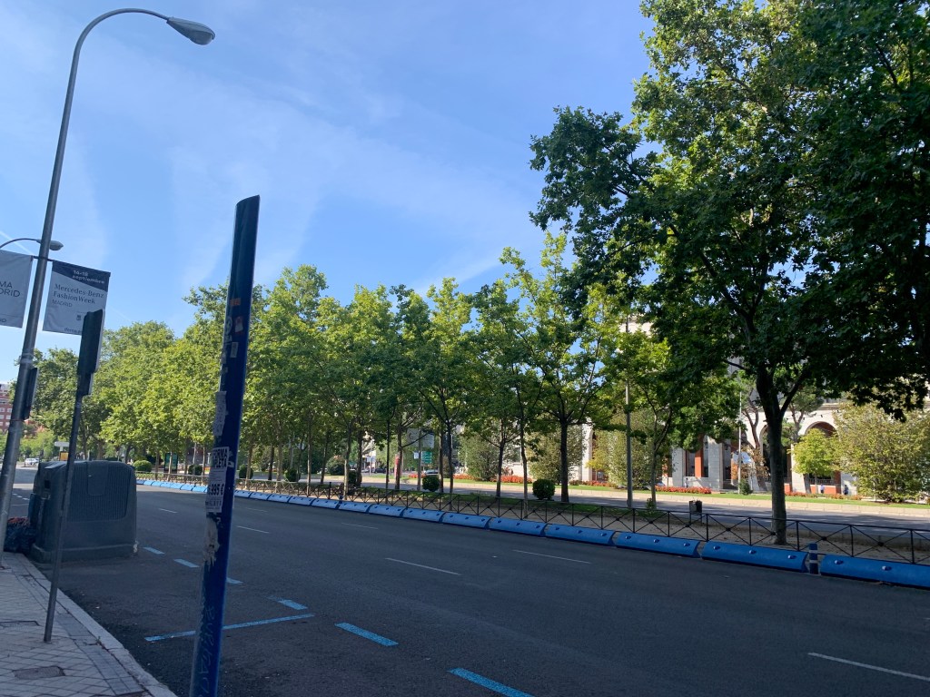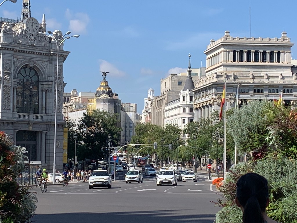 In Madrid ,the boulevards are wide with tree lined walkway in the middle.There were also Bus and bike lanes and an occasional helmet.
