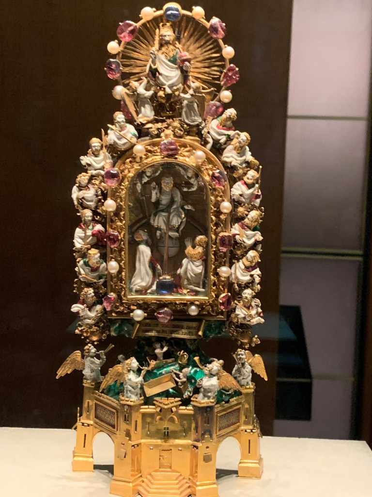 Monday was our last full day in London. We had 2 destinations:Harrods and St. Paul’s Cathedral.Harrods is a huge department store covering a full block.I was hoping to find a long wool coat(and thus a new suitcase),but no luck.We walked to St. Paul’s to see the Cathedral.You needed tickets to get in ,and they were ridiculous in price for a very short visit.having both seen it before,we were happy just for the exercise.